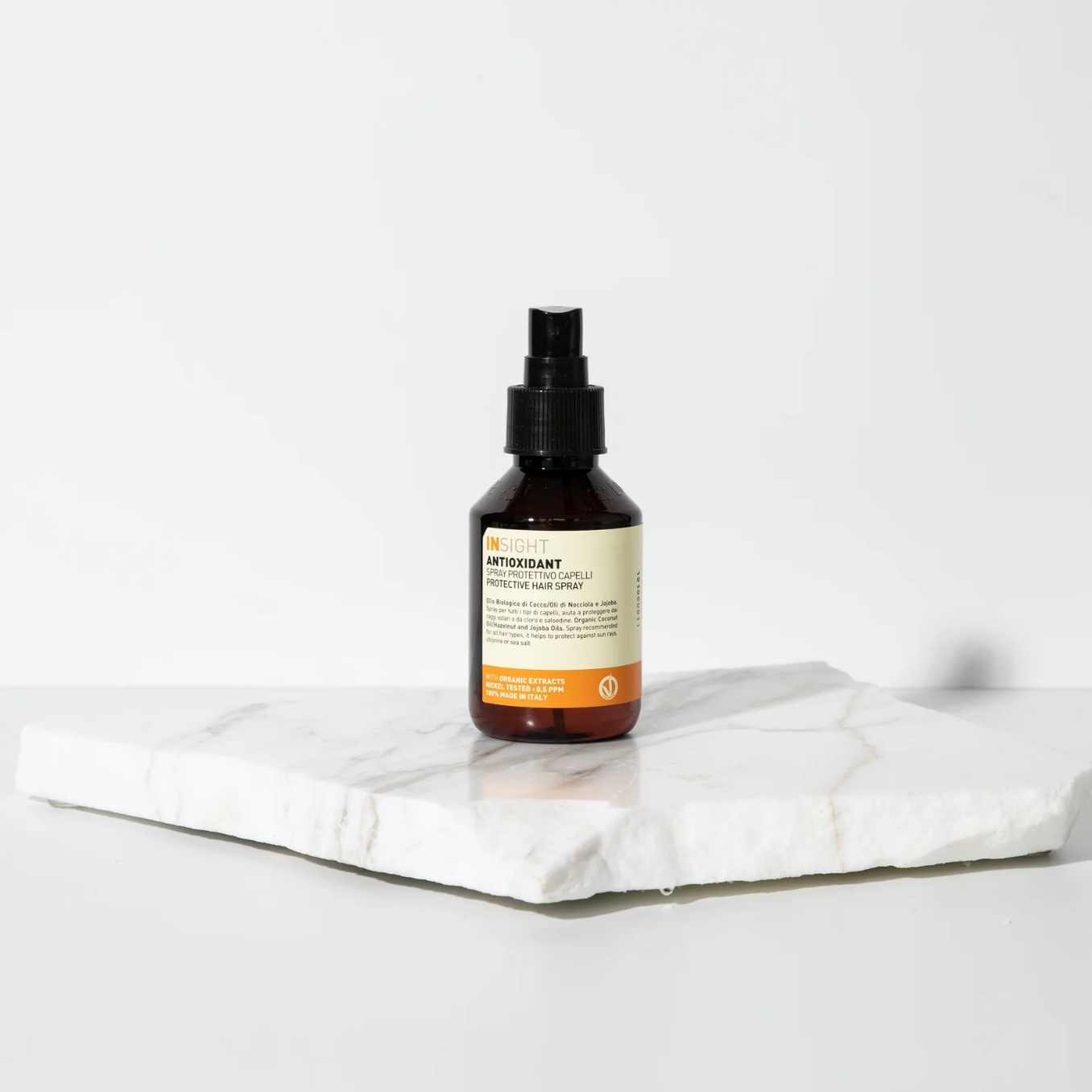 Protective Hair Spray de INSIGHT, spray protector y nutritivo para todo tipo de cabello. Protege la cabellera de los agentes atmosféricos, de los rayos solares, el cloro y la sal, dejándola suave e hidratada.