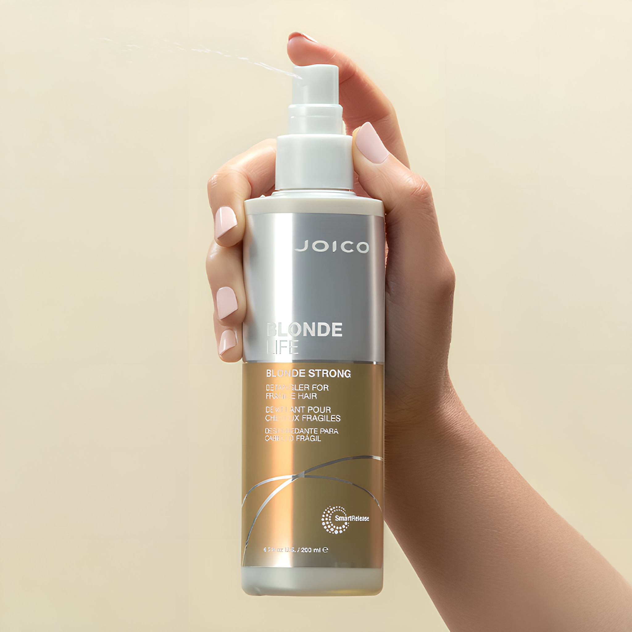 Desenredante Blonde Strong, que protege el cabello ultra aclarado todos los días para atreverse con los rubios. Este protector multiuso ayuda a desenredar las mechas frágiles, además de mantenerlas resistentes y protegidas contra los rayos UV y las herramientas térmicas.