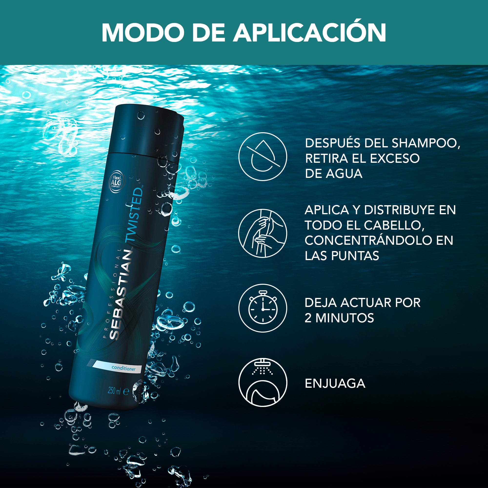 Twisted Conditioner de Sebastian Professional, retiene la hidratación y potencia la elasticidad para facilitar el estilizado, dejando unos rizos que permanecen flexibles y manejables durante todo el día.
