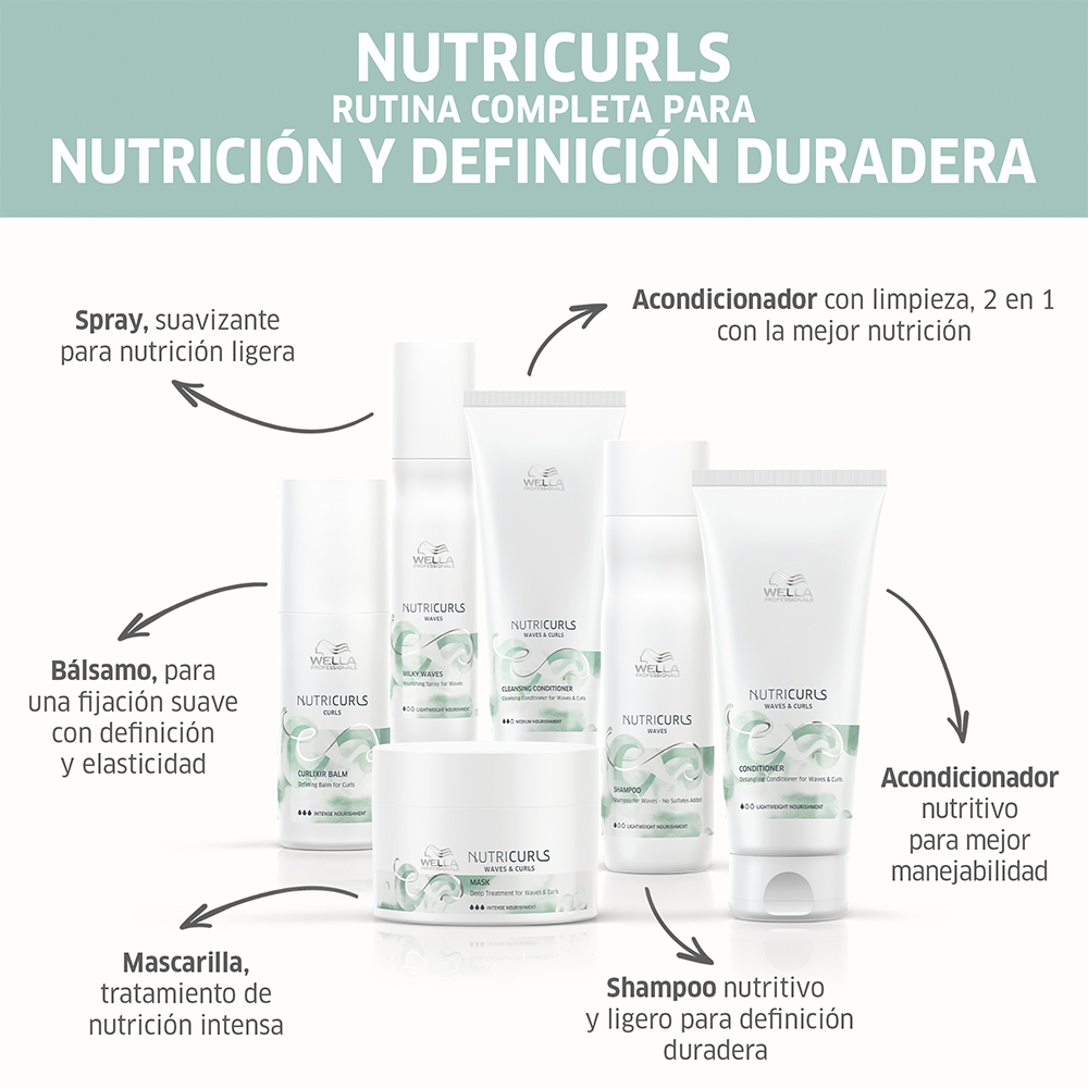 Nutricurls acondicionador de Wella Professionals, desenredante para rizos y ondas. Definición ligera.