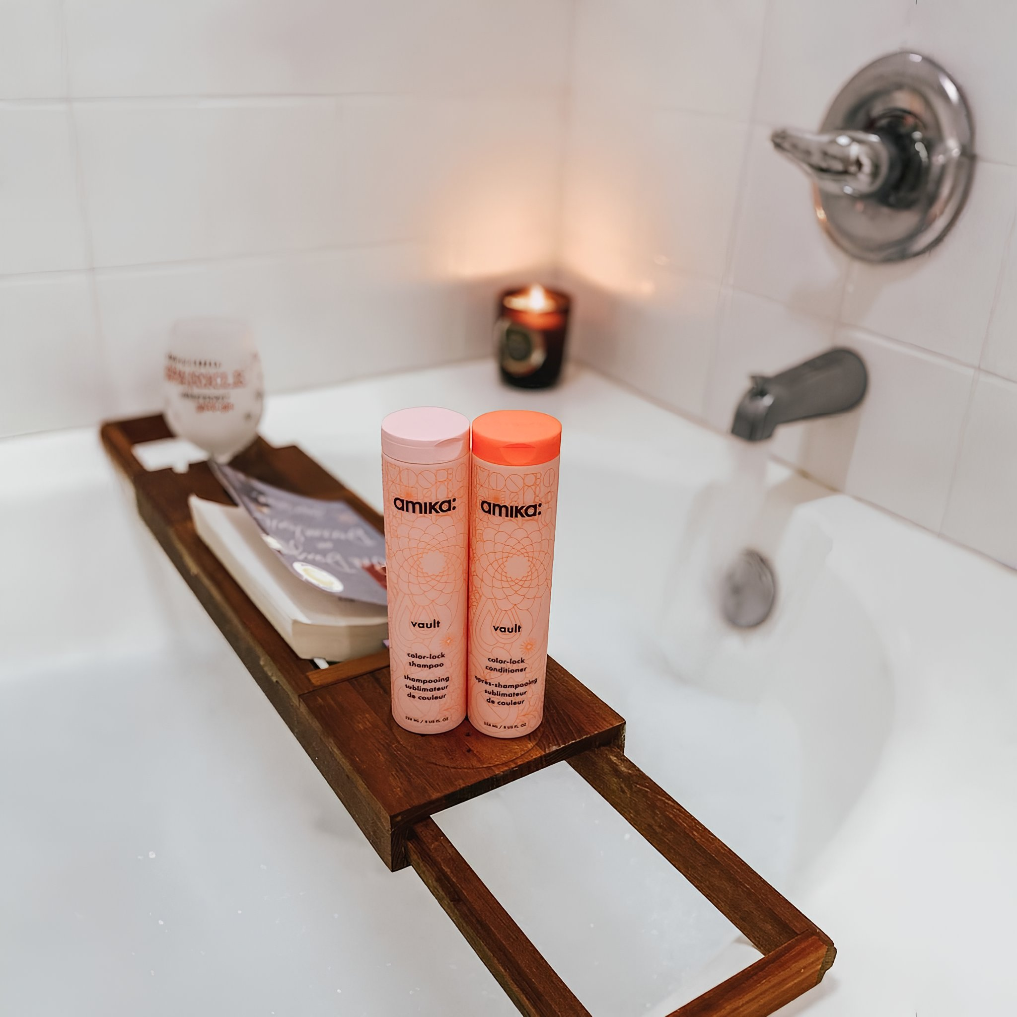 Vault Color-Lock Shampoo de Amika, ponga color y vitalidad en la cerradura, los filtros UV, los antioxidantes y los sulfatos cero brindan mantenimiento de sombra y resistencia.