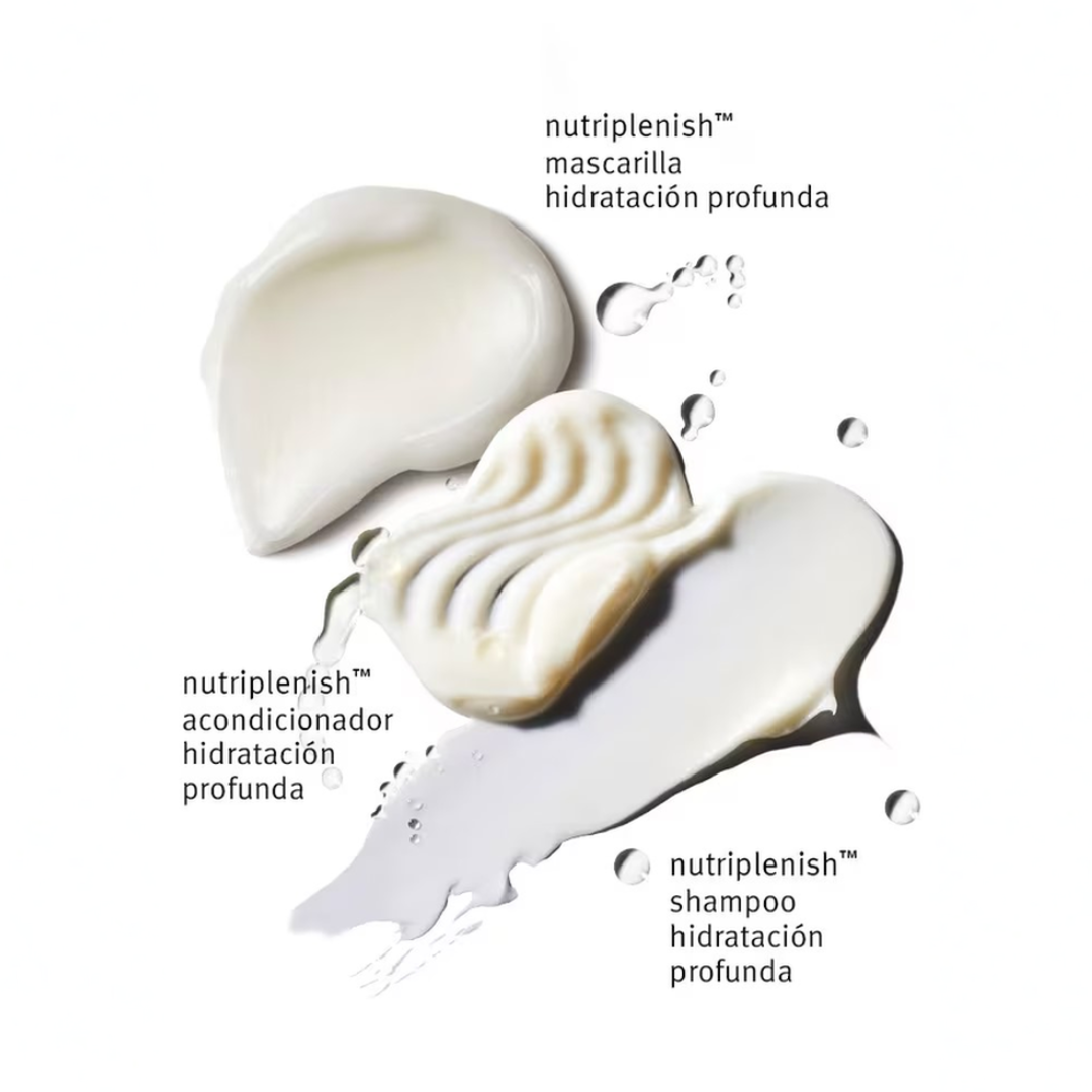 Shampoo:Masajear sobre el cabello mojado desde la raíz hasta las puntas. Enjuagar. Siga con el acondicionador nutriplenish™ de hidratación profunda. Acondicionador: Úsalo después del shampoo nutriplenish™ para una hidratación profunda. Masajear sobre el cabello mojado desde la raíz hasta las puntas. Enjuagar. Mascarilla de tratamiento nutriplenish™ hidratación profunda 1. Después del shampoo, utilizar semanalmente como tratamiento ultrahidratante. 2. Alisa el cabello húmedo desde la raíz hasta las puntas. 3. Dejar actuar de 2 a 5 minutos. 4. Enjuaga bien. Pro tip: Utiliza la mascarilla como tratamiento acondicionador nocturno o como mascarilla capilar sin enjuague. Para una experiencia sensorial similar a la de un spa, aplique una toalla caliente sobre la mascarilla capilar y relájate.