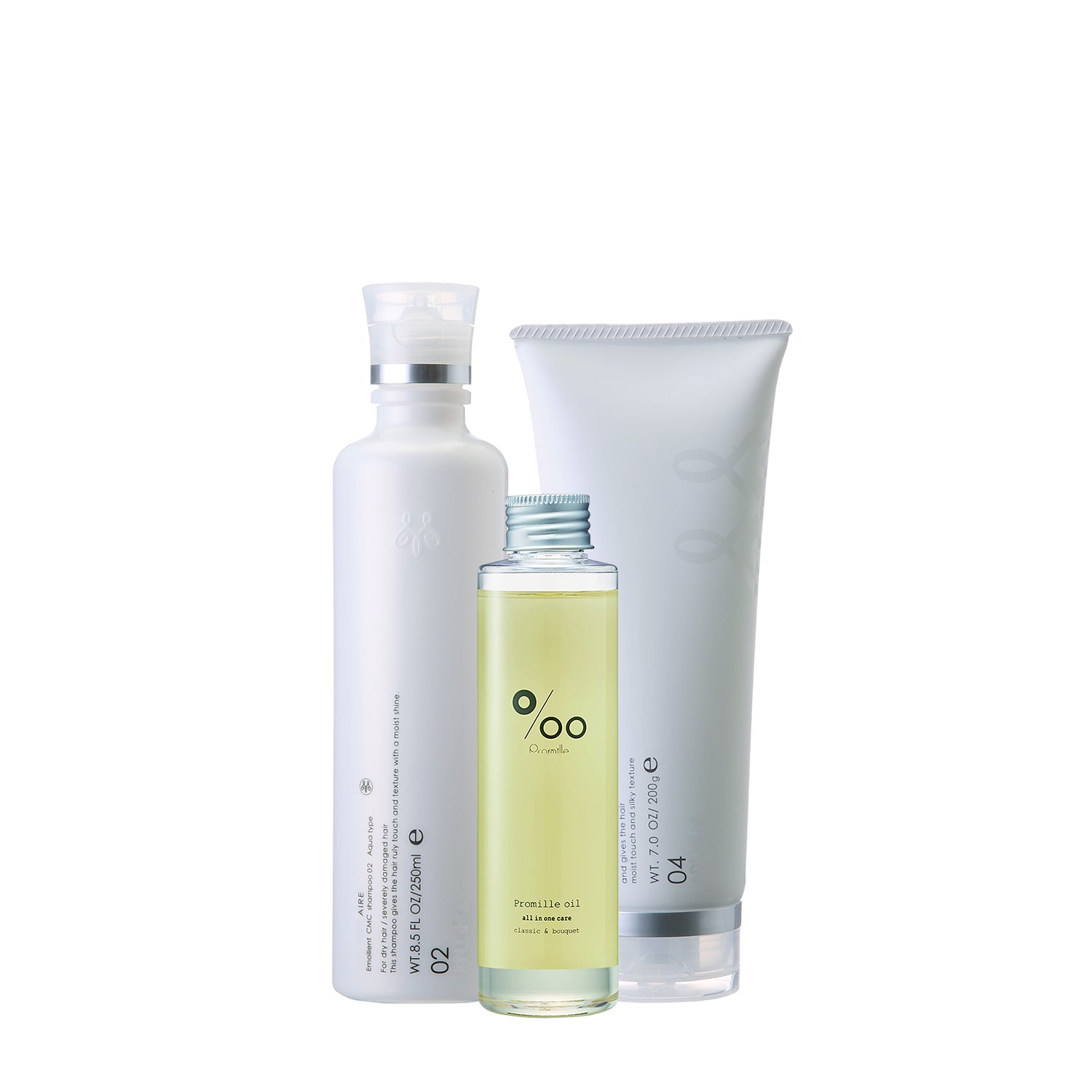 Mucota Aire 04, es una Mascarilla Hidratante de uso frecuente que contiene miel que ayuda a hidratar el cabello reseco o ligeramente dañado. La mezcla de Miel, CMC y Aceite de Jojoba tienen un efecto emoliente (suavidad) en el cabello que mantiene la elasticidad e hidratación. Mejora la textura del cabello y le ayuda a recuperar la suavidad con un toque de hidratación y textura de seda.