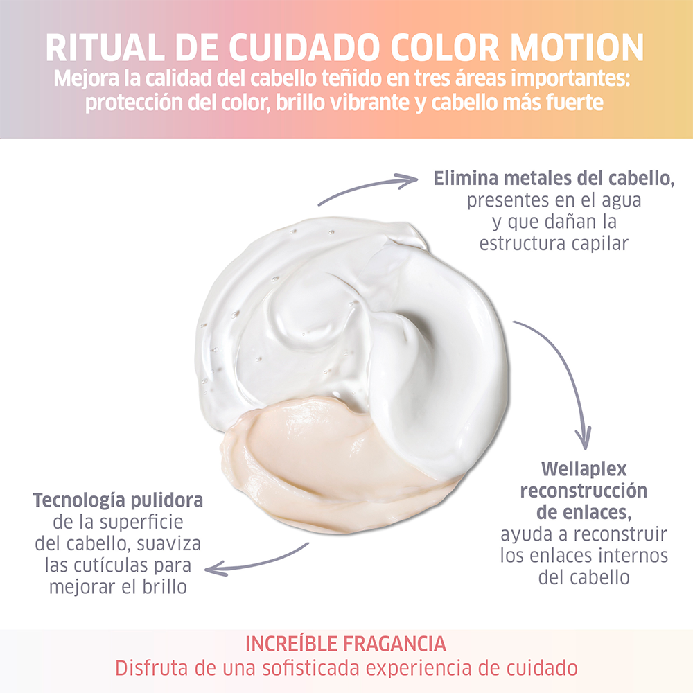 Color Motion Shampoo de Wella Professionals, ayuda a sellar el color y preservar la suavidad y el brillo del cabello.