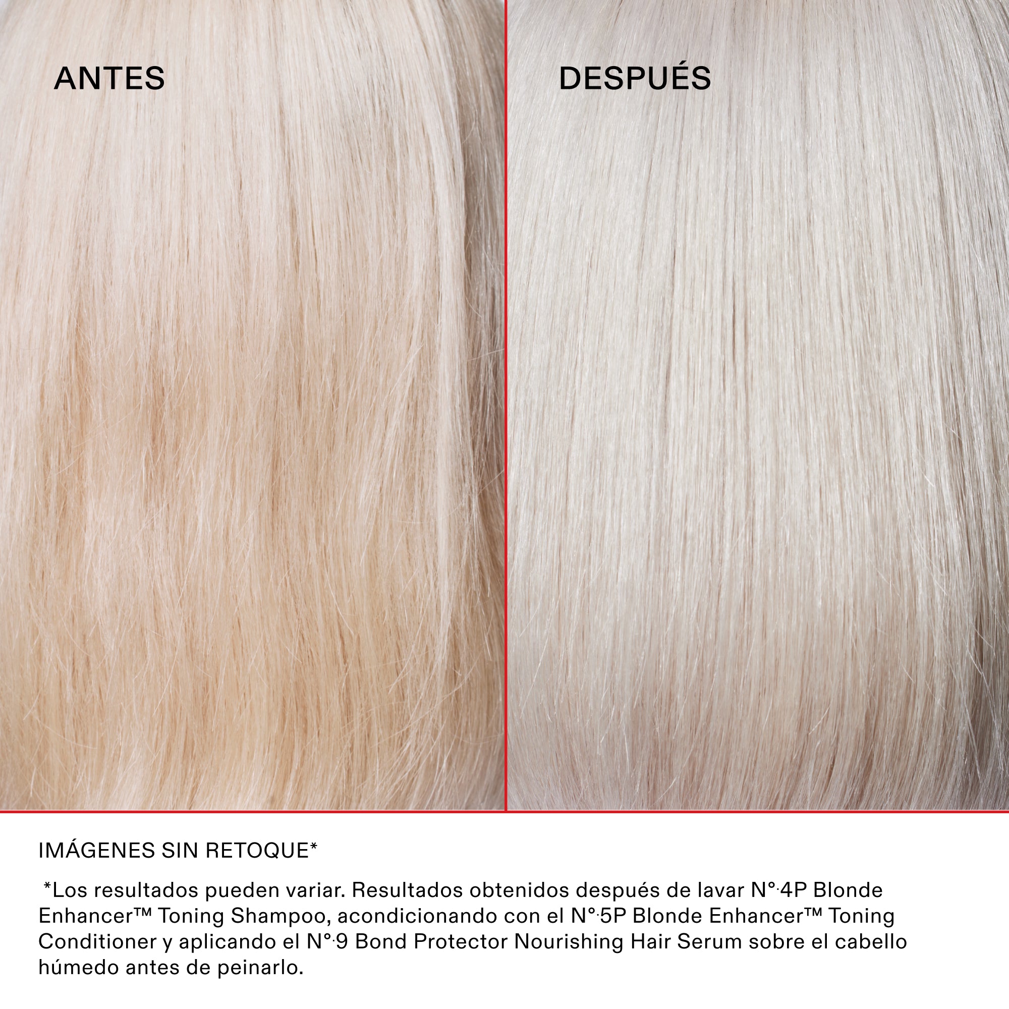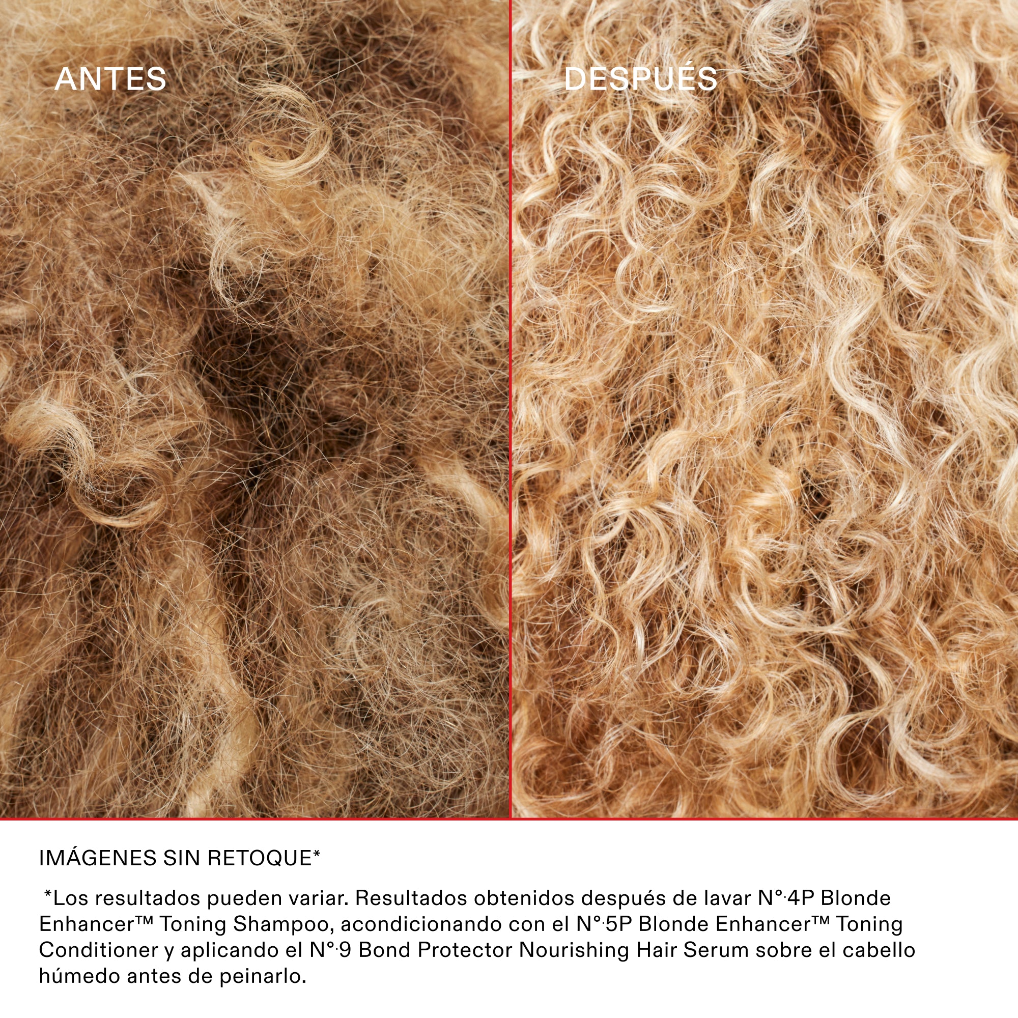Rubios perfectos! Con OLAPLEX® No. 4P BLONDE ENHANCER ™ TONING SHAMPOO limpia, tonifica y repara mientras mantiene tu cabello hidratado desde crecimiento hasta las puntas. Este shampoo altamente concentrado y sin sulfatos forma una rica espuma para neutralizar el tono amarillo y aumentar el brillo después de un uso. Adecuada para todos los cabellos rubios, decolorados y canosos, naturales o creados por un estilista, de crecimiento a punta o balayage, esta fórmula que no se seca se puede alternar en cualquier rutina de mantenimiento del cabello según sea necesario para obtener tu mejor rubio.