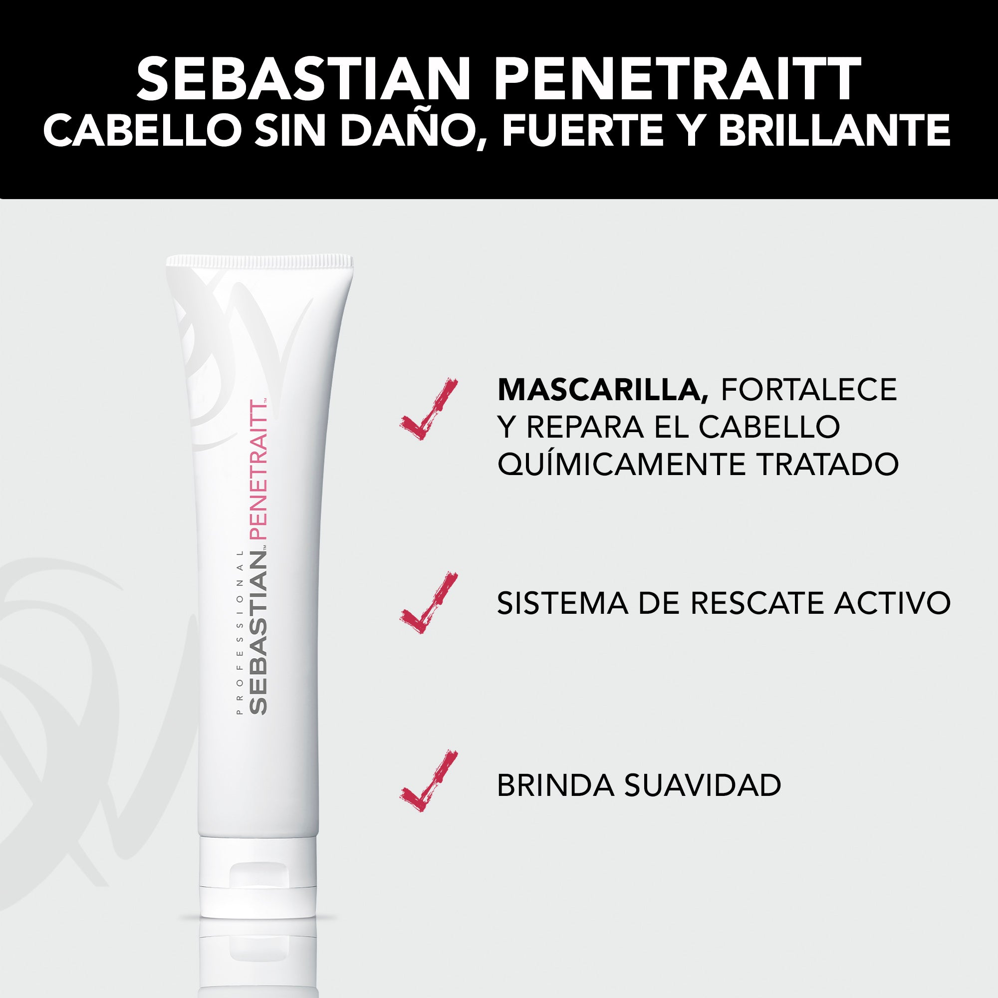 Penetraitt Treatment de Sebastian Professional, tratamiento de acondicionamiento profundo. Transforma el cabello seco y apagado en suave y brillante. Realza el brillo y viveza del cabello tratado químicamente.